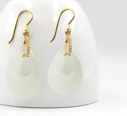 14K Gold Hand Carved Pendant, Natural White Onyx Pear Shape Gem Charm Pendant, Teardrop Calibrated, Onyx Gemstone With Hoop earrings