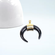14K Gold Gemstone Double Horn Pendant, Obsidian Crescent Moon Charms Black onyx Pendant Gold Wire Horn Boho Tribal Pendant