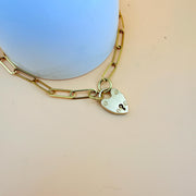14K Gold Heart Lock Necklace Heart Padlock Necklace Paperclip Elongated Link Carabiner Lock Chain Heart Padlock Chain Rollo Chain Padlock
