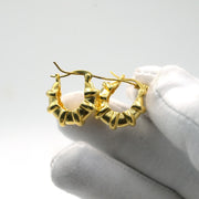 14K Gold Scalloped Shrimp Earrings, Classic Shrimp Hoop Earrings Real Gold Classic Statement Hoops, Chunky Earrings, Handmade Jewelry