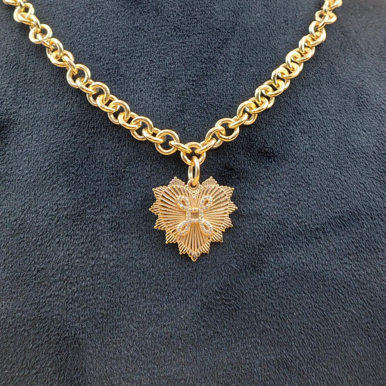 14K Gold True Love Knot Heart Token Medallion, Thick Belcher Chain, Chunky Round Chain Link Necklace, Layered Everyday Choker Necklace
