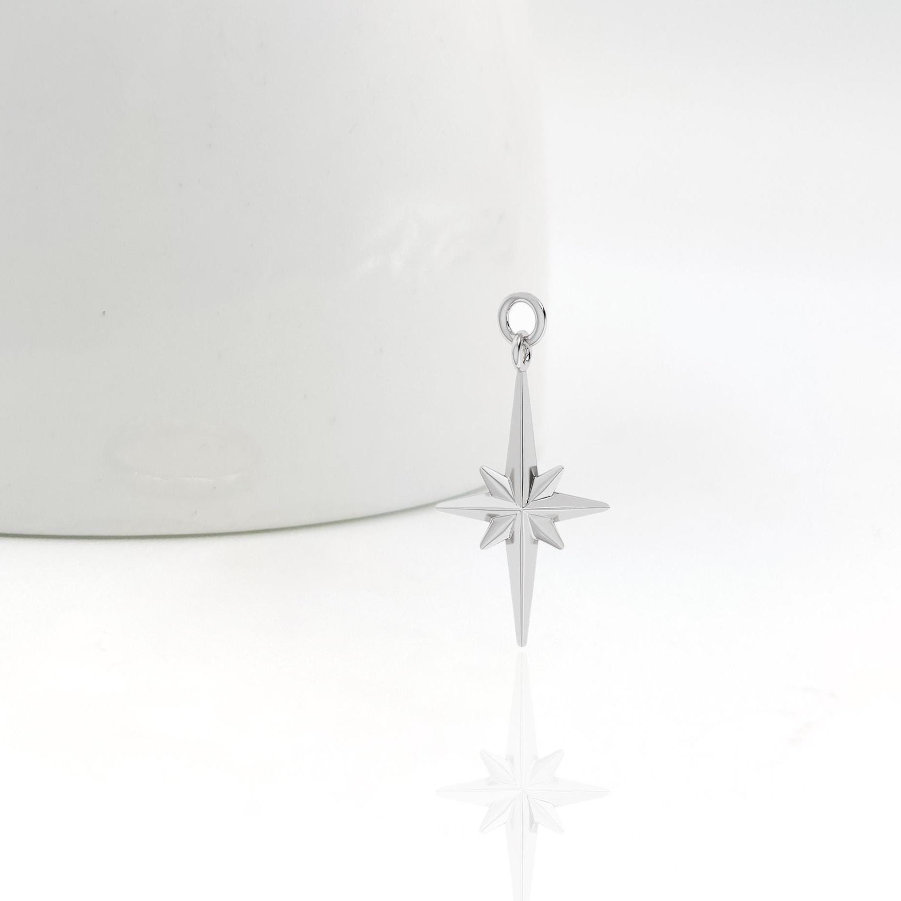 14K Solid Gold Celestial Necklace, Dainty Celestial Necklace, North Star Pendant, Starburst Diamond Pendant, Dainty Starburst, Star Pendent